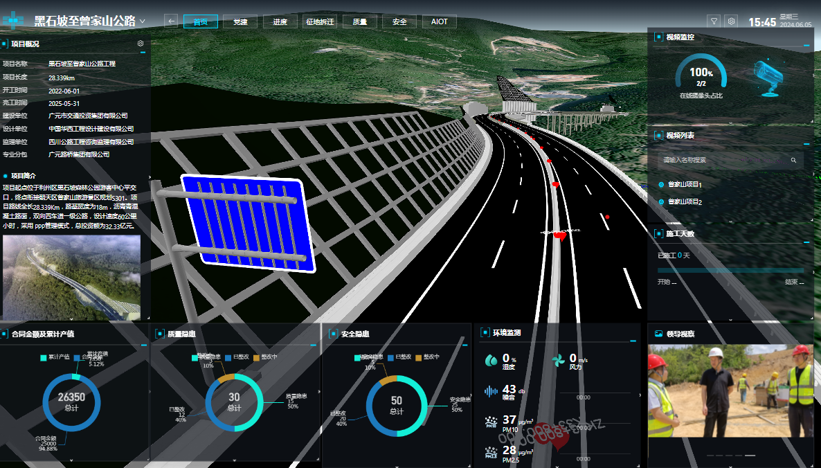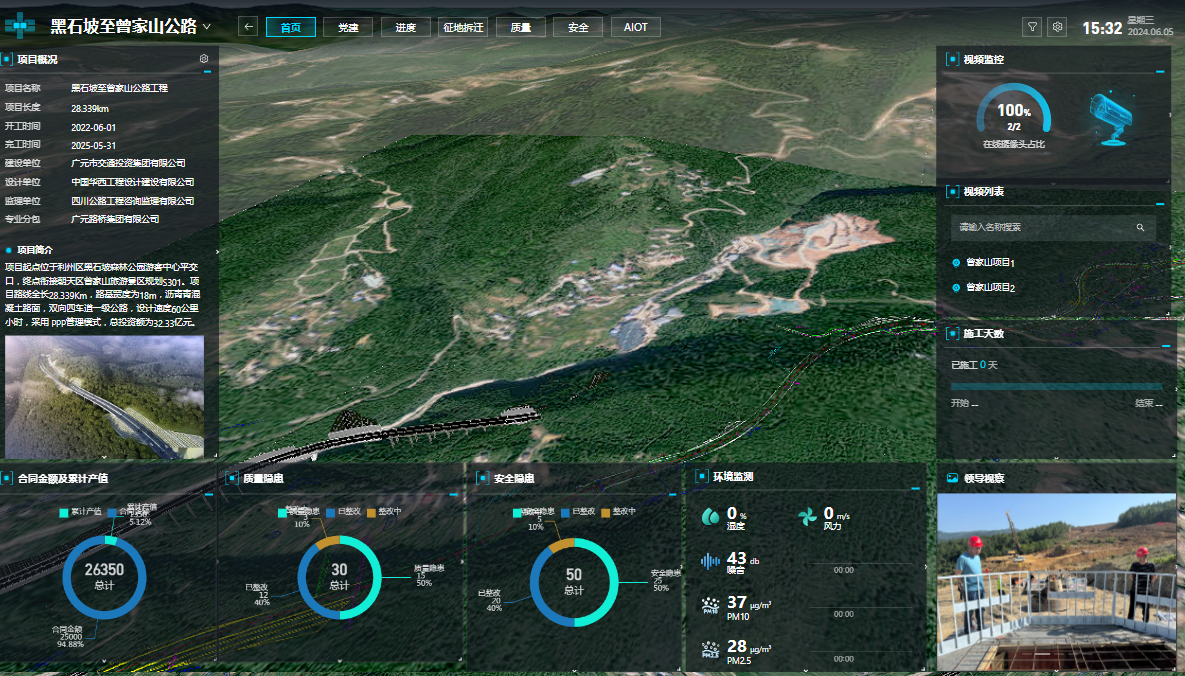 為強化風險管控,黑曾路項目部引入智慧信息化可視管理平臺,綜合運用BIM、GIS、物聯(lián)網(wǎng)、大數(shù)據(jù)、人工智能、無人機等先進技術,構建基于BIM+GIS+IOT+AI+PM的智慧工地平臺,實現(xiàn)進度、質(zhì)量、安全等全方位智能化管控。