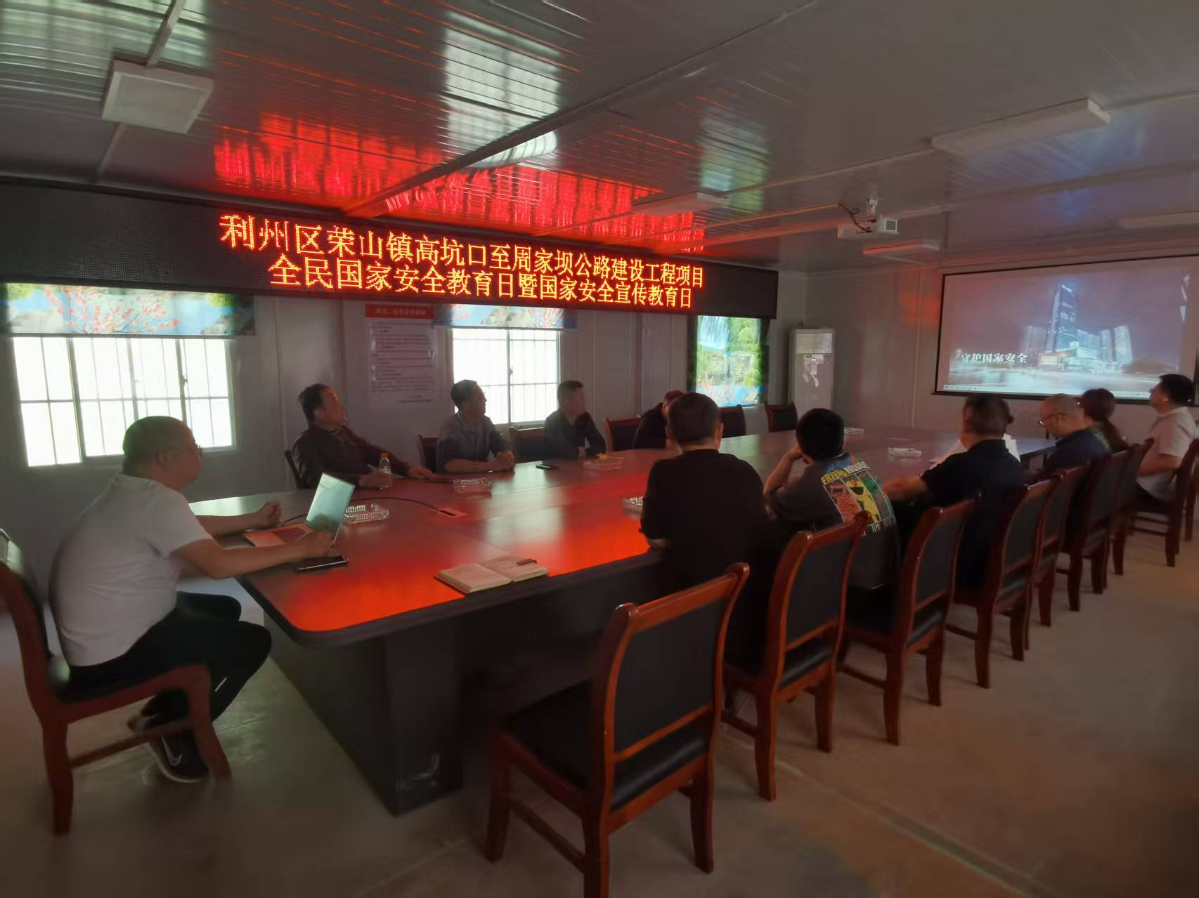 公司各部門干部職工、廣元市利州區(qū)榮山鎮(zhèn)高坑口至周家壩公路建設(shè)工程項(xiàng)目部人員觀看警示視頻,集中學(xué)習(xí)國家安全教育知識