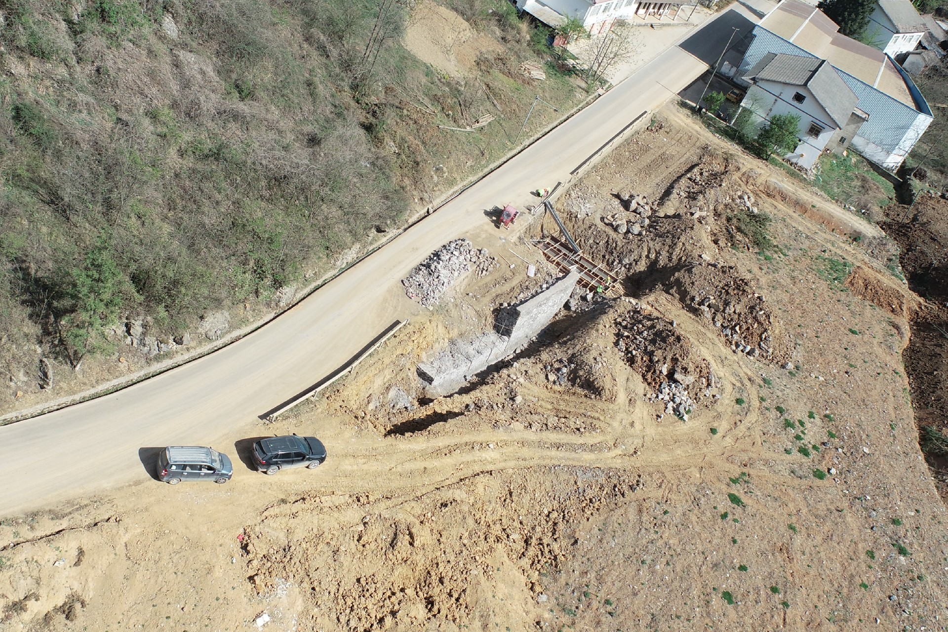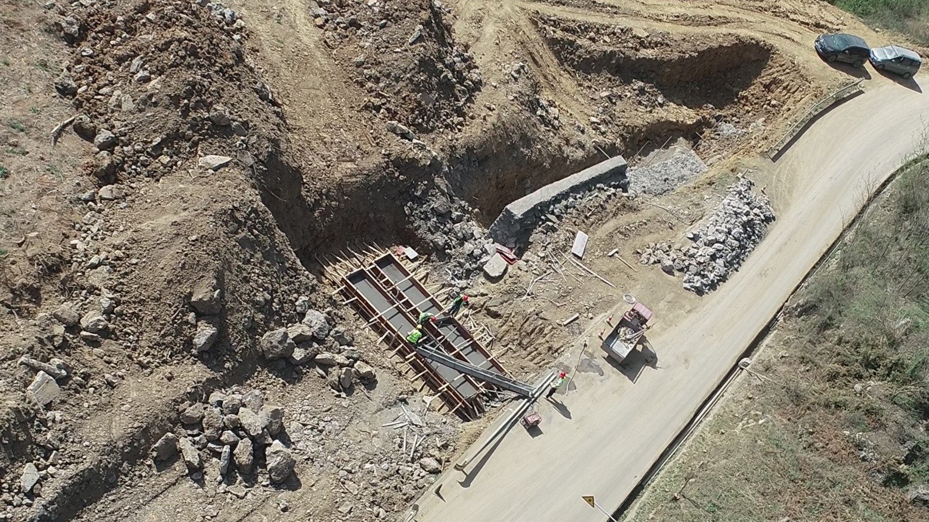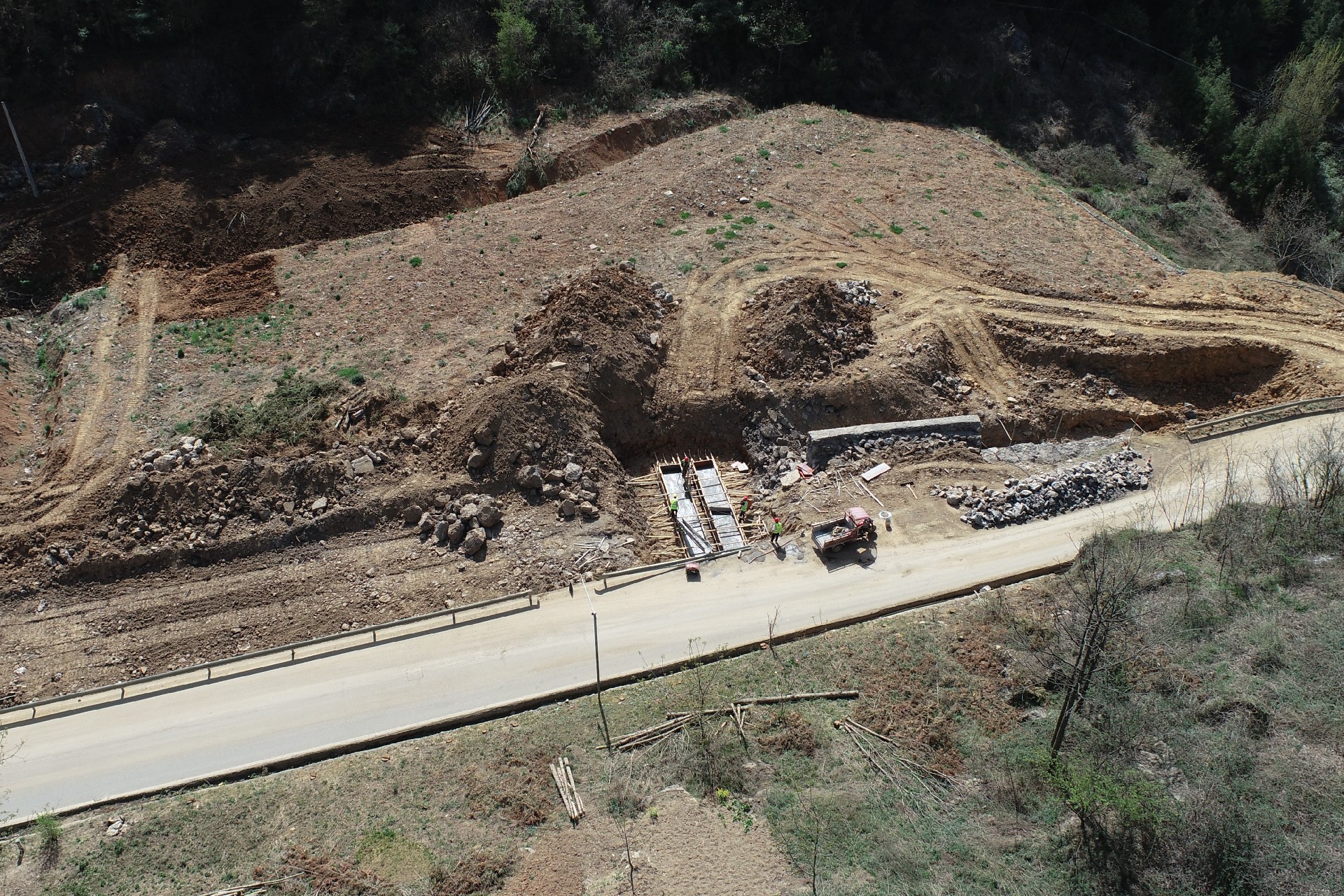 目前正在進(jìn)行主線(xiàn)路基開(kāi)挖,完成蓋板涵預(yù)制85塊,占總數(shù)52%;擋防工程5023方,占總數(shù)31%;土石方開(kāi)挖6.5萬(wàn)方,占總數(shù)12%,利用土石方1.5萬(wàn)方,占總數(shù)11.5%;場(chǎng)鎮(zhèn)段400米右幅底層6cm油面鋪設(shè)。
